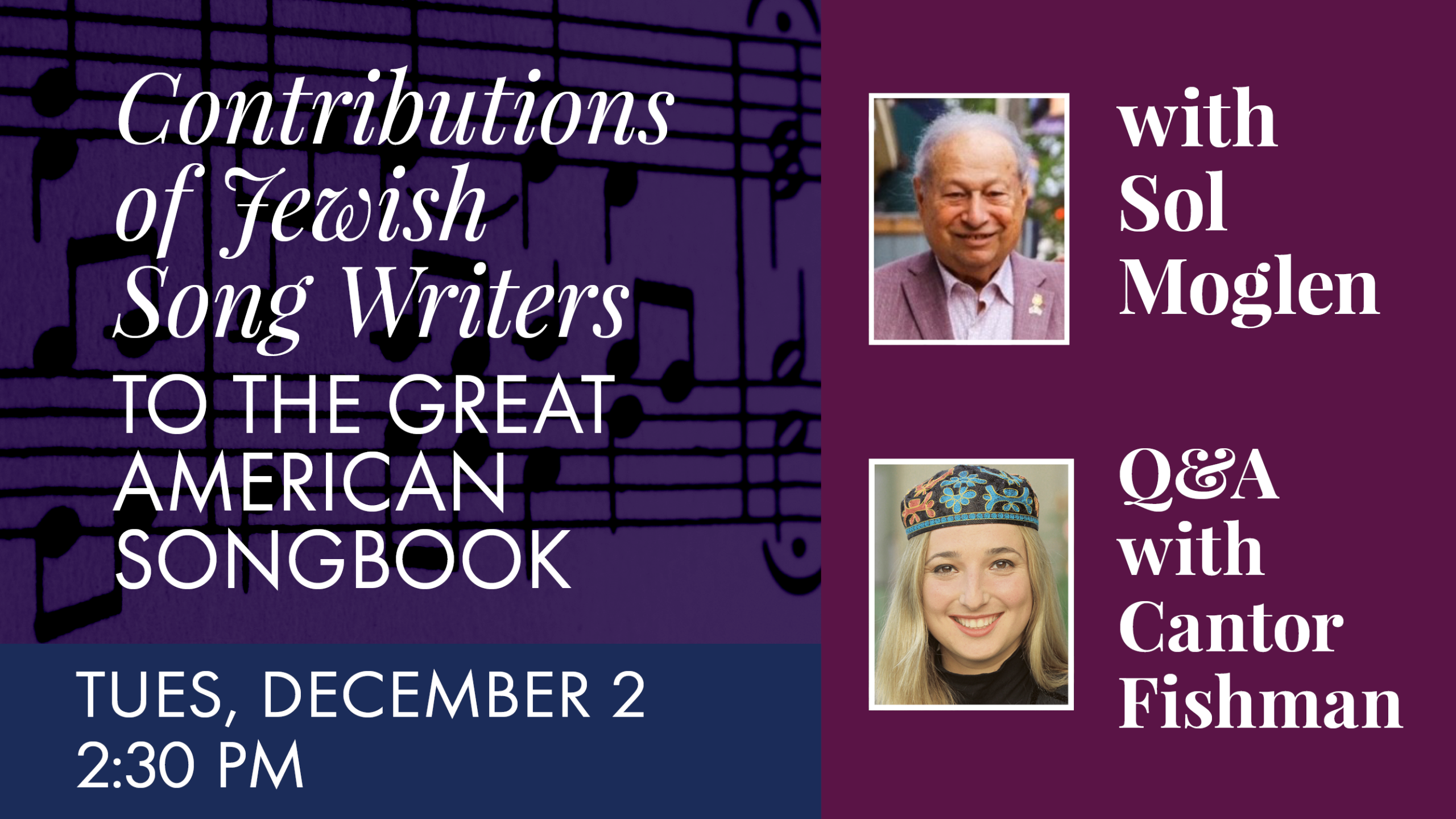 Join us for Contributions of Jewish Songwriters to The Great American Songbook to watch a captivating 60-minute documentary presented by Sol Moglen with a post-film Q&A led by Cantor Magda Fishman.